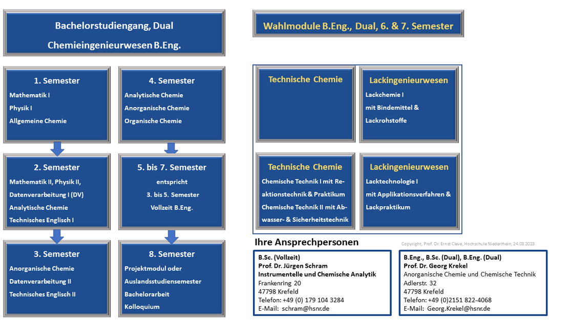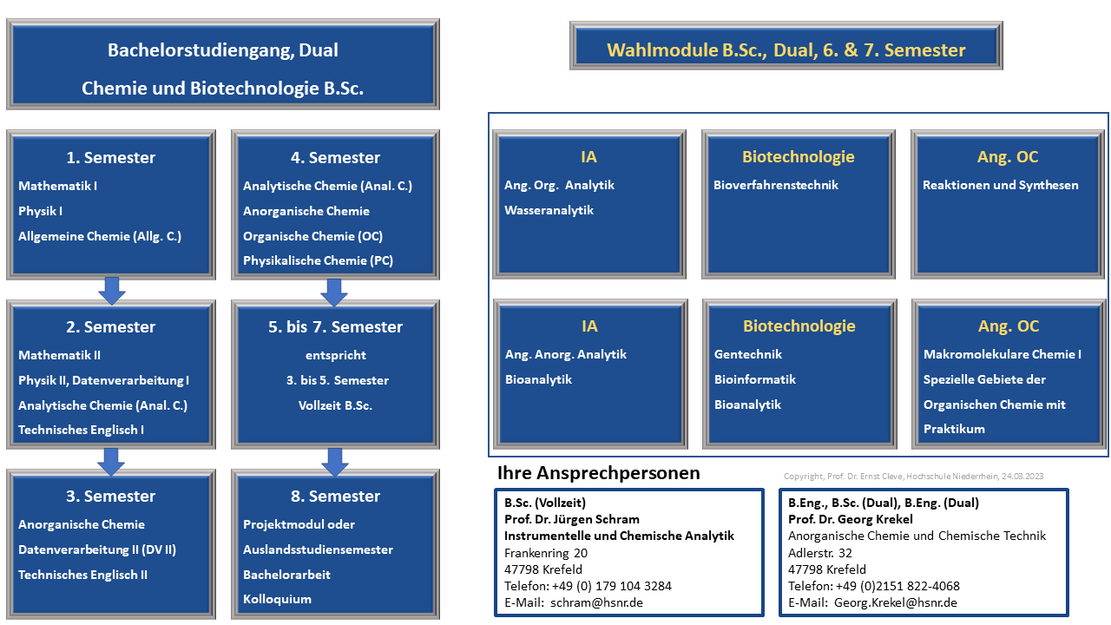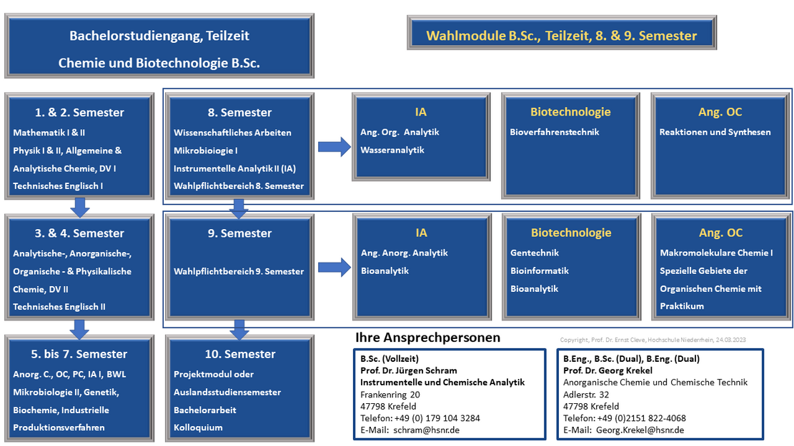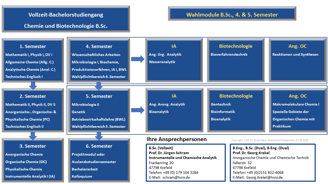 Der Fachbereich Chemie mit rund 1.000 Studierenden befindet sich am Standort Krefeld West. Chemie am Niederrhein hat eine über 150-jährige Tradition. 19 Professorinnen und Professoren sowie zahlreiche Mitarbeiterinnen und Mitarbeiter betreuen unsere Studierenden in den beiden Bachelorstudiengängen: