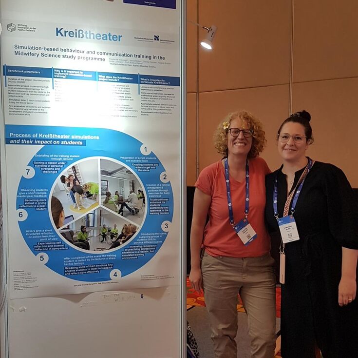 Die regelmäßig stattfindende Lehrform Kreißtheater bietet den Studierenden der Angewandten Hebammenwissenschaft simulationsbasierte Verhaltens- und Kommunikationstrainings mit berufserfahrenen Schauspielenden. Hier werden curricular eingebettete regelmäßige Skills-Lab Übungen, bei denen die Studierenden in Rollenspielen miteinander Handlungsabläufe ihres Berufsfeldes üben, mit dem Kreißtheater durch simulationsbasierte realitätsnahe Szenarien ergänzt. In den Szenarien trainieren die Studierenden sowohl professionelle Handlungsweisen als auch kommunikative Skills in der Zusammenarbeit mit ausgebildeten Schauspielenden, den Simulationspersonen. Die Umsetzung dieser Lehrform wurde von September 2022 bis November 2023 durch die Stiftung Innovation in der Hochschullehre (Ausschreibung Freiraum 2022) als Projekt finanziell gefördert. Während der Projektlaufzeit wurde die Lehrform Kreißtheater in den Studiengang implementiert und wird den werdenden Hebammen in jedem Semester für geeignete Themen angeboten.