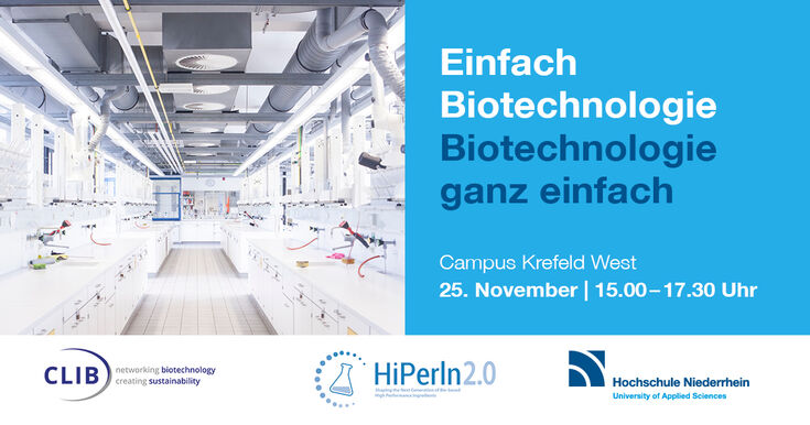 Mit dem Vortragsnachmittag geben die Hochschule Niederrhein und der Cluster industrielle Biotechnologie einen spannenden Einblick in die aktuelle Forschung und laden Schülerinnen und Schüler, Studierende und alle interessierten Bürgerinnen und Bürger ein, die Biotechnologie auf einfache und doch eindrucksvolle Weise kennenzulernen.