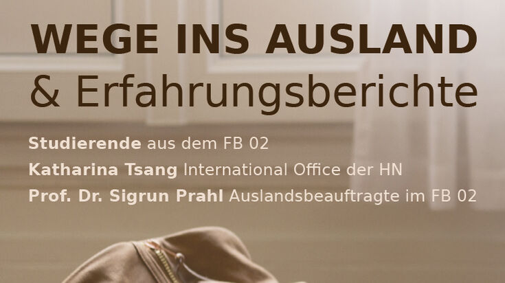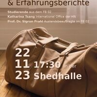 Am Mittwoch, 22.11.2023, werden nach einer Begrüßung durch unseren Dekan, Prof. Dr. Erik Schmid, Katharina Tsang vom International Office und Sigrun Prahl, Auslandsbeauftragte des Fachbereich Design, über Möglichkeiten informieren, ein Semester an einer Partnerhochschule oder ein Praktikum im Ausland zu absolvieren. Ebenfalls berichten Studierende von ihren Erlebnissen im Auslandssemester. Eine Anmeldung ist nicht erforderlich.