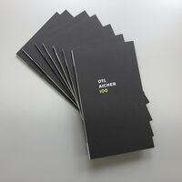 »Otl Aicher 100 – typographie und bürgerliche freiheit« – Die kleine, bibliophile Sonder-Edition, die mit einer Biografie Aichers eingeleitet wird, wurde von Nora Gummert-Hauser gestaltet und handgesetzt. In Zusammenarbeit mit dem Team der Druckwerkstatt am Frankenring wurde sie liebevoll im Buchdruck, Digitaldruck und Siebdruck in einer limitierten Auflage von 100 Exemplaren gedruckt und handgeheftet. Unterstützt wurden die designkrefelder glücklicherweise noch von einer anderen Koryphäe aus dem Bereich der Gestaltung: Erik Spiekermann aus Berlin borgte ihnen aus dem unerschöpflichen Fundus seiner Druckwerkstatt p98, die hier im Haus fehlenden Umlaute der Bleilettern der Schrift Akzidenz Grotesk. Und wenn sie genau hinsehen, entdecken sie, welche Seiten zuerst gedruckt wurden, denn dort fehlten diese noch!