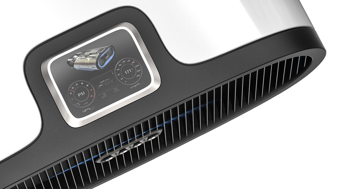 Das mehr als hundert Jahre alte Wirkungsprinzip einer Kolbendampfmaschine wird bei dieser Designvision an den aktuellen Stand der Designentwicklung katapultiert. Bewegung, Kraft und Mechanik werden übersetzt in die heutige Produktsprache und lassen die Idee eines Aggregates für private Energie-Selbstversorger entstehen.