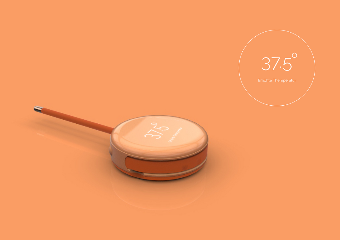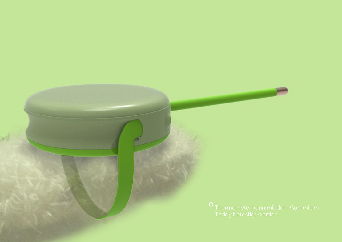 Produktdesign für zwei unterschiedliche Zielgruppen: für Kleinkinder, denen mittels einer begleitenden illustrierten Geschichte die Scheu vor dem Fieberthermometer genommen wird und für Eltern, die ein tadelloses Handling fordern.