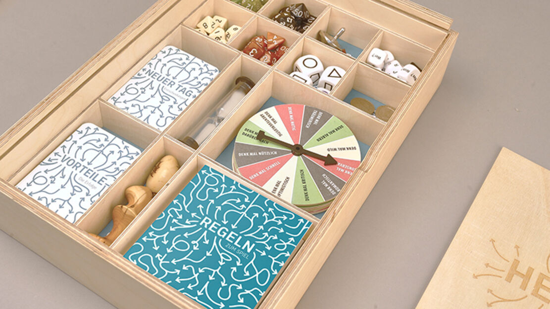 Die »Heureka-Box« enthält einen Entscheidungsbaum, der durch einen Fragenkatalog führt. Es gibt verschiedenste Zufallshelfer, wie Würfel, Kreisel und Münzen, die im Alltag auch dem schlimmsten Entscheidungsmuffel weiterhelfen. Sowie das „Heureka“-Kartenspiel, mit dem es schnell gelingt, herauszufinden, wen die Karten am Ende zum Entscheidungskönig machen.
