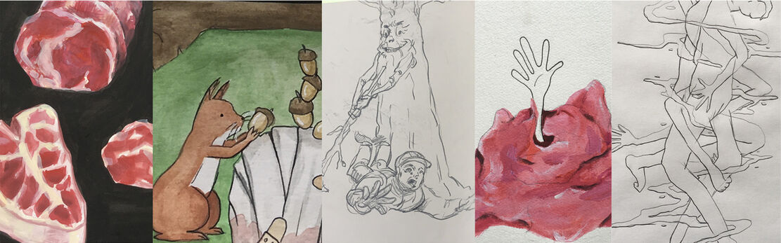 Die Herausforderung bestand darin, sich diesen Themen zeichnerisch in möglichst zahlreichen Variationen zu nähern. Dazu gehören naheliegende, im Wortsinn verstandene Lösungen, aber auch freie Assoziationen, die weniger als unmittelbare Illustrationen zu verstehen sind, sondern als bildnerische Ergänzung zum Text. Ziel ist das Erreichen eines sicheren Skizzierens, dass spontan und souverän auf unterschiedlichste Themen zu reagieren versteht.