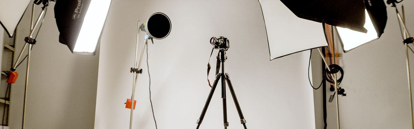 An unserem Fachbereich können die Studierenden für Foto- und Videoaufnahmen auf ein umfangreiches Equipment für die Ausleihe zurückgreifen. Es umfasst alles, was für professionelles Arbeiten wichtig ist – angefangen bei Sony Videokameras, Canon DSLR-Kameras, analogen und digitalen Mittelformatkameras bis hin zum ausgefeilten Zubehör.