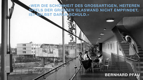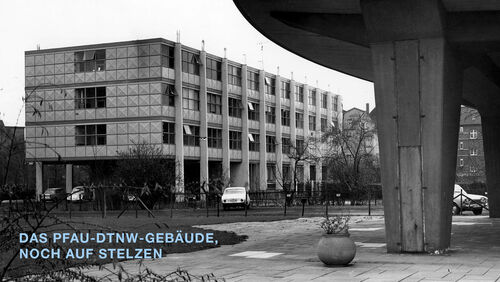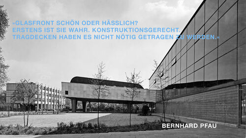 dass wir uns als Hochschule Niederrhein einmal mit dem Architekten beschäftigen, der das Gebäudeensemble auf dem Frankenring gebaut hat, kann ich nur begrüßen. Bernhard Pfau hat nicht nur die ehemalige Textilingenieurschule gebaut, in der heute der Fachbereich Design sitzt, sondern auch das angrenzende Deutsche Textilforschungszentrum Nord-West, das DTNW. Es ist in diesem Zusammenhang mehr als eine Randnotiz, dass es uns im vergangenen Jahr gelungen ist, das DTNW als An-Institut wieder an die Hochschule Niederrhein zu binden. Der von Bernhard Pfau konzipierte Campus ist damit wieder komplett.