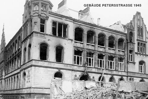 1945 11. Januar weitgehende Zerstörung des Gebäudes Petersstraße 123.