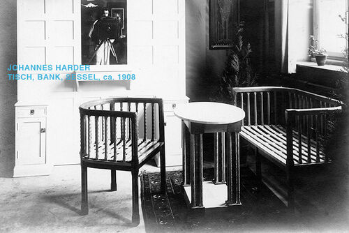1907 Gründung des Deutschen Werkbunds. Fast alle Lehrenden der Handwerker- und Kunstgewerbeschule Krefeld (Biebricher, Boysen, Harder, Jahn, Mörl, Svensson und Wolbrandt) zählen zu den Mitbegründern.
