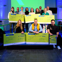 Insgesamt waren 32 Ideen im Vorfeld eingereicht worden, sechs Finalistinnen und Finalisten durften dann ihre Pitches live vor Publikum im Boxring präsentieren und sich den kritischen Fragen der Jurorinnen und Juroren aus Wirtschaft und Gründerszene stellen. Auf Platz zwei landete E-Commerce-Studentin Julia Janzen mit „Zusammen stärker“ (Preisgeld 15.000 Euro). Die App soll junge Menschen an Seniorinnen und Senioren vermitteln, um ihnen im Alltag zu helfen – und dafür finanziell durch Förderer unterstützt werden. Die „Lani Panty“-Menstruationsunterwäsche der Textilstudentinnen Svetlana Akinsina und Anne Christine Koch mit wechselbaren Einlagen belegte Platz drei (7.500 Euro).