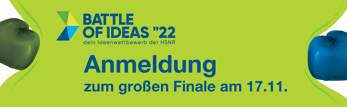 Anmeldung zum großen Finale des BATTLE OF IDEAS "22, dem Ideenwettbewerb der Hochschule Niederrhein am 17.11.