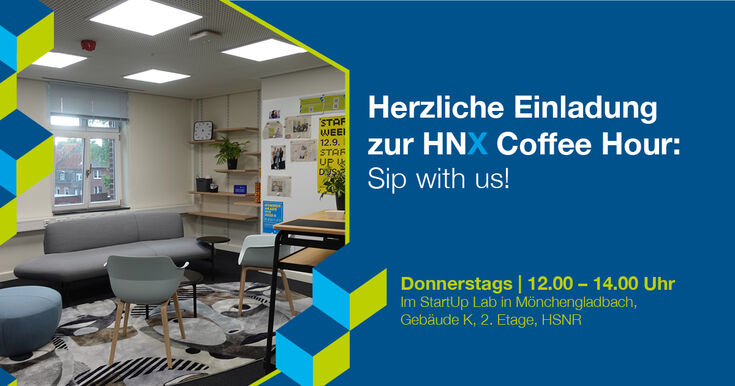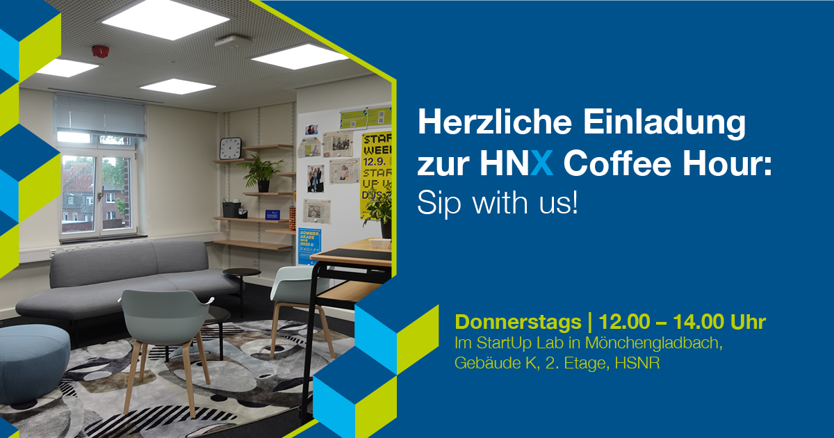 Hier habt ihr die Möglichkeit bei kostenfreiem Kaffee/Tee und Snacks in geselliger Atmosphäre zu Netzwerken und euch aktiv auszutauschen. Lernt dabei das HNX StartUpLab kennen, knüpft neue Kontakte und lasst euch von unserem Team inspirieren.