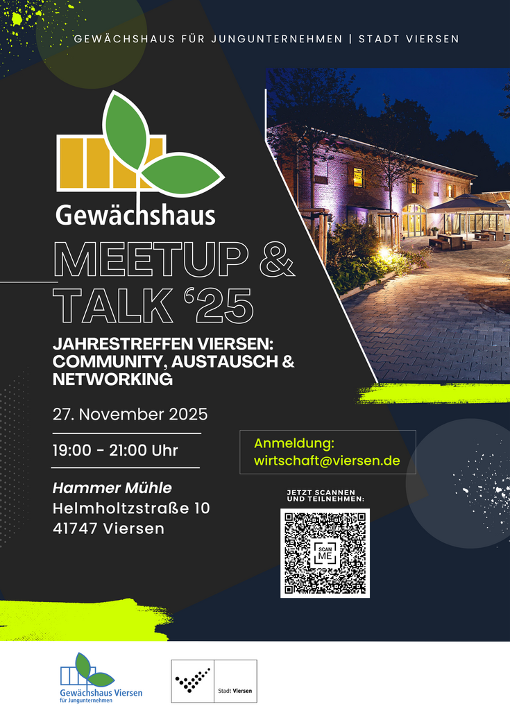 - Anmeldung bis 20. November 2025 an wirtschaft(at)viersen.de