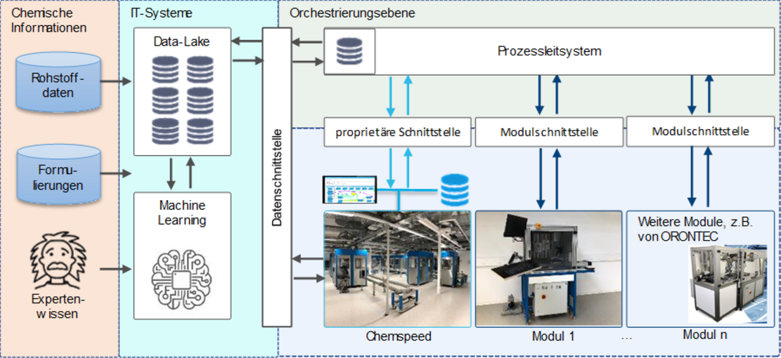 Das Projekt I²DACH zielt darauf ab, standardisierte Verfahren zur Formulierung, Applikation und Charakterisierung von Farben und Lacken zu entwickeln und diese auf einer Hochdurchsatz-Anlage umzusetzen und durch den Einsatz von Machine Learning soll die Entwicklungszeit für neue Farben und Lacke verkürzt werden. Üblicherweise werden bei der Entwicklung viele verschiedene Rezepturen erprobt. Mit einem gezielterem Vorgehen bei der Versuchsplanung (Design of Experiment) sollen chemische Rohstoffe eingespart werden. Durch automatisierte Anlagen für die Formulierung, Applikation und Charakterisierung von Farben und Lacken werden Entwicklungsprozesse erheblich verkürzt. Diese Punkte führen zu Einsparungen bei den Unternehmen und machen nachhaltige Lackprodukte schneller am Markt verfügbar. Die Entwicklung einer automatisierten Anlage zur selbständigen Versuchsplanung auf Basis von Machine Learningist technisches Neuland, nicht nur in der Chemie. Für die Umsetzung eines Digitalen Zwillings für die Chemie 4.0 ist ein umfassender Ansatz erforderlich, in dem das Prozesswissen der Chemie, die Datenanalyse und die automatisierte Steuerung integriert werden.