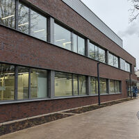 Das Gebäude K am Campus Mönchengladbach, das einst das Warenprüfamt für das Textilgewerbe war, ist bereits im Juli feierlich eingeweiht worden. Die Einrichtung und Möblierung befindet sich aktuell in den letzten Zügen. Der BLB hat binnen zwei Jahren das 750 Quadratmeter große, dreistöckige und denkmalgeschützte Gebäude entkernt, Innenausbau und Technik samt LED-Beleuchtung und Lüftungsanlage erneuert und einen Treppenturm samt Aufzug angebaut.