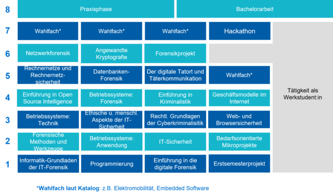 Zusammen mit unseren Kooperationspartnern am Cyber Campus (dem FB Wirtschaftswissenschaften der HSNR und dem FB Informatik der H-BRS) bieten wir die Studiengänge Cyber Security Management und Digitale Forensik an.