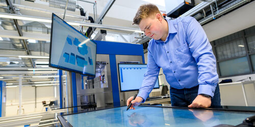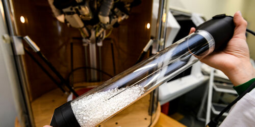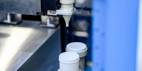„Der Einsatz von künstlicher Intelligenz ermöglicht eine nachhaltige und präzise Entwicklung neuer Produkte. Dieses ressourcenschonende Vorgehen ist faszinierend“, sagt Prof. Dr. Andreas Pinkwart im Anschluss an den Rundgang. Mit der Hochdurchsatz-Anlage soll neue Rezepturen für Farben, Lacke und Klebstoffe nicht nur schneller als bisher entwickeln, sondern vor allem nachhaltiger mit optimal an die jeweilige Anwendung angepassten Eigenschaften.