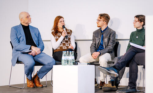 In Beiträgen aus verschiedenen Fachbereichen zeigten Studierende eindrucksvoll, wie Erinnerungsarbeit in Studium und Lehre verankert ist – etwa mit künstlerischen Arbeiten zum Buch „Mein himmelblaues Akkordeon“ über den Krefelder Auschwitz-Überlebenden Werner Heymann oder Berichten von einer Gedenkstättenfahrt nach Auschwitz.