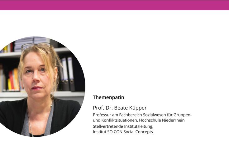 Integrations-Ministerin Josefine Paul und Andreas Zick (Leiter ConflictA & Institut für Konflikt- und Gewaltforschung, Universität Bielefeld) erörterten in einem Dialoggespräch Chancen und Risiken von Konflikten für eine demokratische Gesellschaft, Souad Lamroubal (Kommunalbeamtin und Autorin) moderierte diesen Austausch. In Workshops betrachteten die Teilnehmenden Möglichkeiten zur Konfliktbearbeitung aus der Praxis.