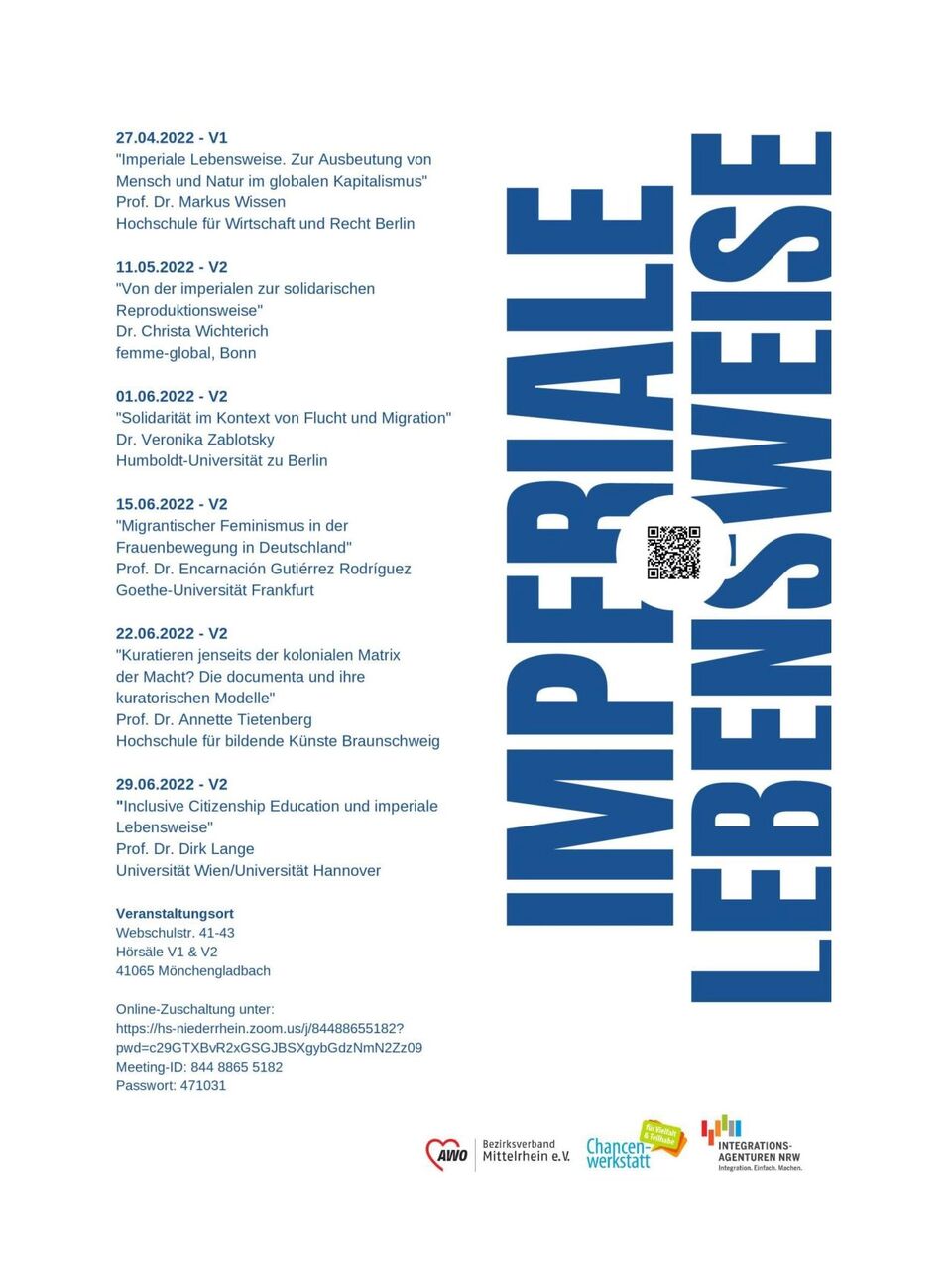 Der Vortrag findet in Kooperation mit der "Chancenwerkstatt für Vielfalt & Teilhabe" der AWO - Bezirksverband Mittelrhein e.V. statt.