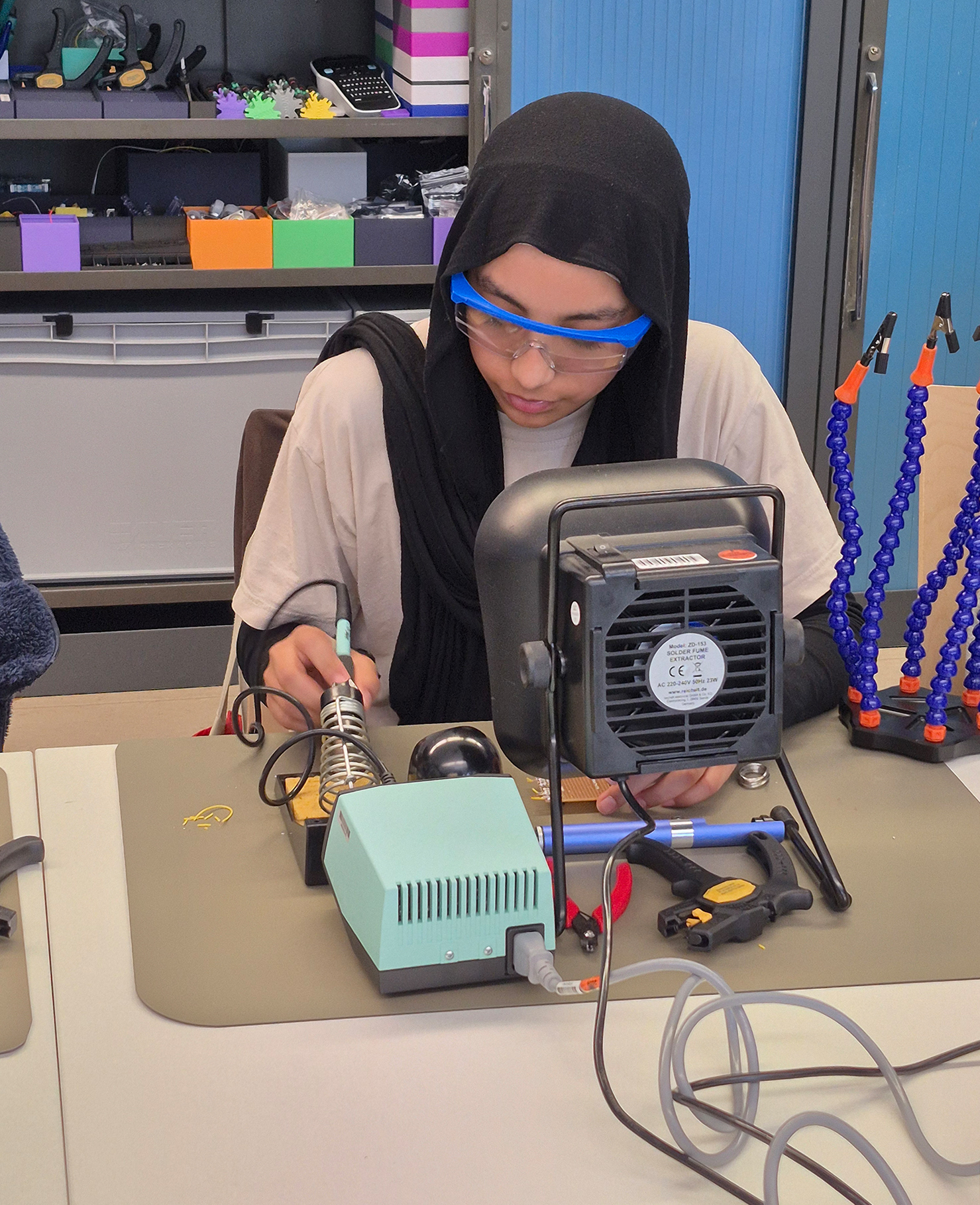 Im Mittelpunkt standen interaktive und experimentelle Angebote, bei denen die Jugendlichen selbst aktiv werden konnten. Von Robotik und Künstlicher Intelligenz (KI) im KI-Labor über 3D-Visualisierung und Animation bis hin zu Produktdesign, 3D-Druck und Virtual Reality reichte das technische Angebot. Auch kreative und handwerkliche Formate wie Emaillieren, Textildesign und Upcycling stießen auf großes Interesse.