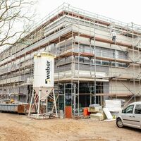 Die Fenster wurden bereits eingebaut. Derzeit erfolgt der technische Ausbau. Der Trockenbau ist in vollem Gange. In dieser Woche wird zudem damit begonnen, den roten Klinker an der Außenfassade zu montieren.