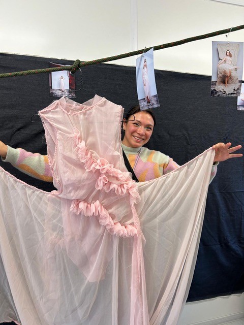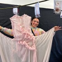 „Der Gewinn der Seidenschleife ist für mich eine große Ehre und erfüllt mich mit Stolz“, sagt Antonia Dannenberg. „Besonders freue ich mich darüber, dass die viele Arbeit, die ich in die Kollektion gesteckt habe, nun auf so schöne Weise Anerkennung findet.“ Auch sie fand den Austausch mit den anderen Designer:innen als besonders bereichernd. „Ein unvergesslicher Moment war zudem der Besuch im Haus der Seidenkultur: Die Geschichten der Krefelder Seidenweber haben mir eindrucksvoll vor Augen geführt, in welch traditionsreichem Kontext wir uns bewegen. Mit diesem Hintergrundwissen trägt die Auszeichnung für mich noch einmal eine viel tiefere Bedeutung. Ich finde es großartig, dass die Stadt jungen Menschen die Chance gibt, ihre Kollektionen einem breiten Publikum zu präsentieren und so ein Stück Krefelder Stadtgeschichte aktiv mitzugestalten.“ Das Preisgeld investiert Antonia Dannenberg nach Abschluss des Studiums in die eigene berufliche Zukunft.