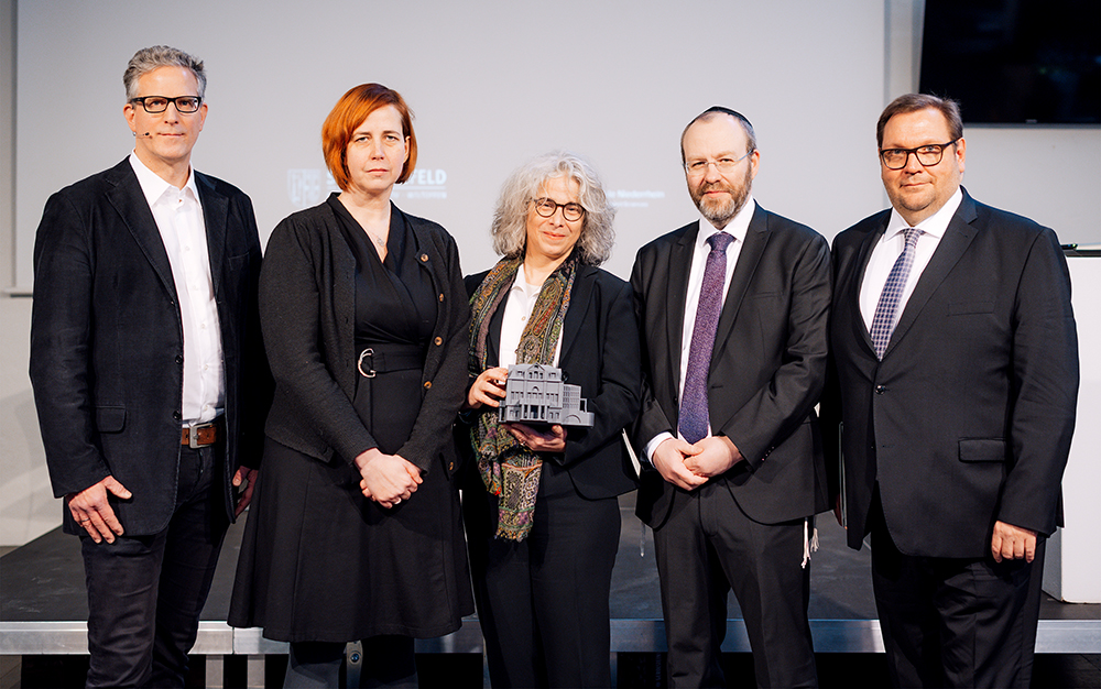 Als Leiterin der NS-Dokumentationsstelle der Stadt Krefeld, Villa Merländer, griff Historikerin Sandra Franz die Rolle von Hochschulen in der NS-Zeit auf. „Die Universitäten haben keine ernsthaften Versuche unternommen, den Eingriffen des NS-Regimes entgegenzutreten. Im Gegenteil: Zahlreiche Hochschullehrende haben sich in den folgenden Jahren erheblich mitschuldig gemacht“, erklärte sie und schilderte, wie Studierende in der NS-Zeit regelrechte Hetzjagden unternommen hätten. Dem stellte sie das Engagement der Studierenden in der heutigen Zeit entgegen: „Ich persönlich setze meine Hoffnung auf die nachfolgende Generation, die kritisch denkt, die ergebnisoffen analysiert und hoffentlich aus den Fehlern der Vergangenheit lernt. Eine große Aufgabe – aber ich glaube, sie liegt in guten Händen.“