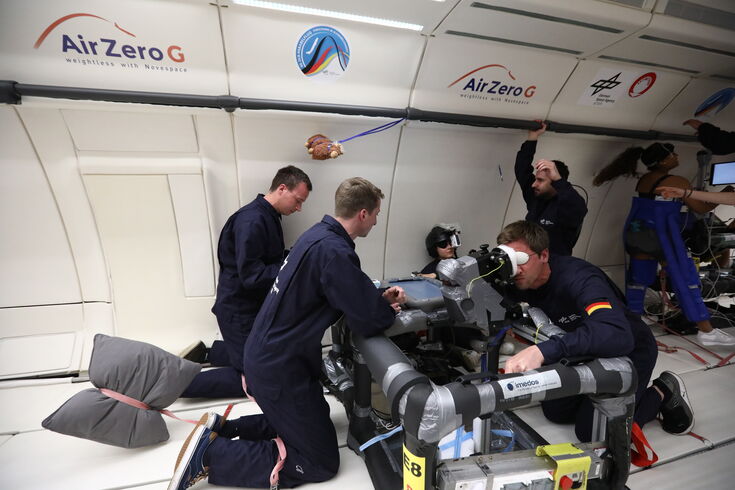 Regelmäßig führt das DLR Parabelflugkampagnen durch, bei der sich Unternehmen und Institutionen mit ihren Projekten bewerben können. Lukas Streese war Teil des 15-köpfigen Teams von Prof. Christian Jung von der Kardiologie des Uniklinikums Düsseldorf. Der Forschungsflieger flog an drei Tagen für jeweils vier Stunden 31 Parabeln. Diese Flüge sind die einzige Möglichkeit für Wissenschaftlerinnen und Wissenschaftler, ihre Forschungsfragen eigenhändig in der Schwerelosigkeit zu testen.