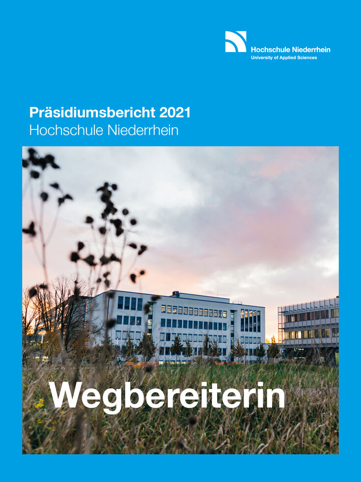 Die Hochschule Niederrhein hat ihren Präsidiumsbericht 2021 veröffentlicht. Mit dem Titel „Wegbereiterin“ wird noch einmal das Motto des 50. Geburtstages aufgegriffen. Weil die Hochschule in den vergangenen 50 Jahren immer neue Perspektiven eröffnet hat und dies auch in Zukunft machen wird.