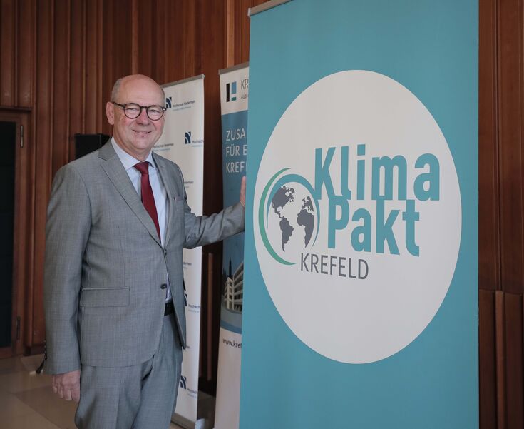 Auch für die Hochschule Niederrhein hat der Klimapakt eine besondere Bedeutung. Die Zusammenarbeit von Hochschule und Stadtverwaltung werde beim Klimaschutz auf neue Grundlagen gestellt, sagt Hochschulpräsident Dr. Thomas Grünewald: „Im Rahmen des Klimapaktes werden wir systematisch und in Zusammenarbeit mit den weiteren Partnern des Klimapaktes auf das große Ziel einer klimaneutralen Stadt hinwirken.“ Ein zentrales Ziel der Hochschul-Nachhaltigkeitsstrategie sei es, gemeinsam mit Wirtschaft und Gesellschaft die nachhaltige Entwicklung unserer Region voranzubringen. „Der Krefelder Klimapakt bietet hierfür den optimalen Rahmen: Wir freuen uns darauf, uns hier mit unseren Wissenschaftlerinnen und Wissenschaftlern für eine klimafreundliche Stadt Krefeld einzusetzen.“