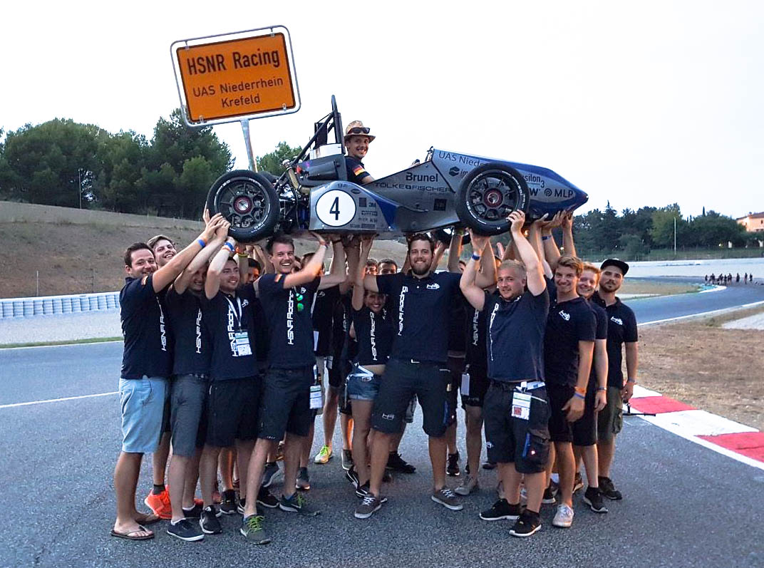 Krefeld, 8. September. Das Formula-Student-Team der Hochschule Niederrhein hat die Saison mit einem weiteren Erfolgserlebnis abgeschlossen. Bei dem hochkarätig besetzten Rennwochenende in Barcelona erreichte das HSNR-Racing-Team einen starken 20. Platz unter insgesamt 35 Teilnehmern. Damit konnte sich die Mannschaft im Vergleich zum Vorjahr noch einmal verbessern.