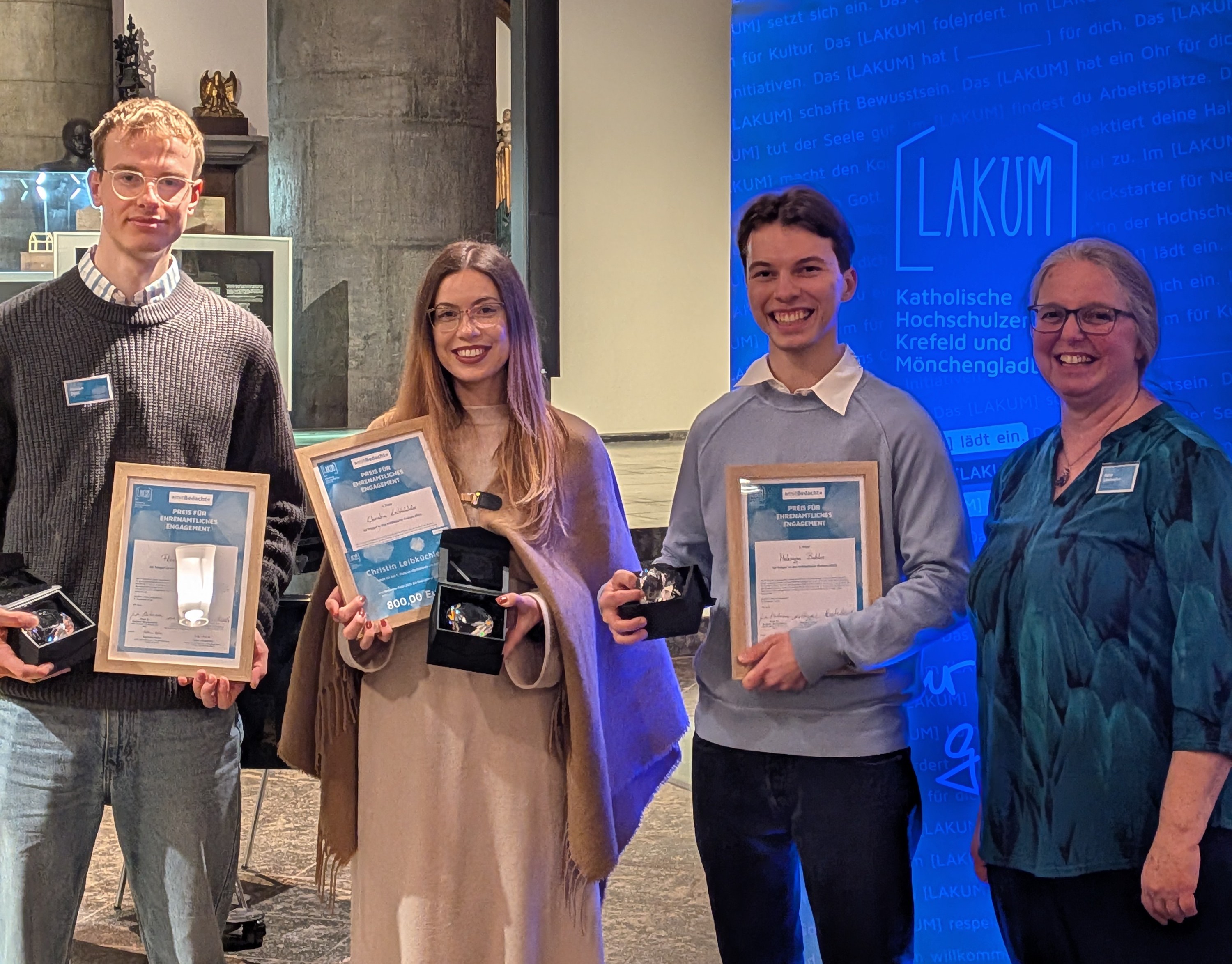 Die katholischen Hochschulzentren LAKUM Krefeld und Mönchengladbach haben zum zehnten Mal den mitBedacht-Ehrenamtspreis verliehen. In der Mönchengladbacher Citykirche kamen Studierende der Hochschule Niederrhein (HSNR) zusammen, um freiwilliges Engagement zu feiern, das weit über den Studienalltag hinausgeht. Der „mitBedacht-Preis“ ist mit insgesamt 2000 Euro dotiert.