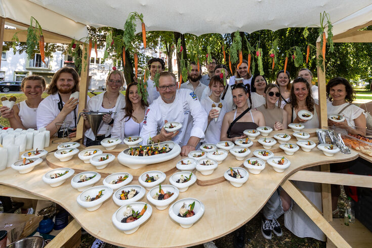 Dass die Studierenden zum 650. Geburtstag der Stadt Krefeld die Chance hatten, ihre eigenen Designs im Stadtgarten interessierten Besucher:innen zu zeigen, freut auch Freyschmidt enorm. Und es geht noch weiter: Beim Format „RegioTable“ will Sternekoch Krüger seine Gerichte im Geschirr der Design-Studierenden servieren.
