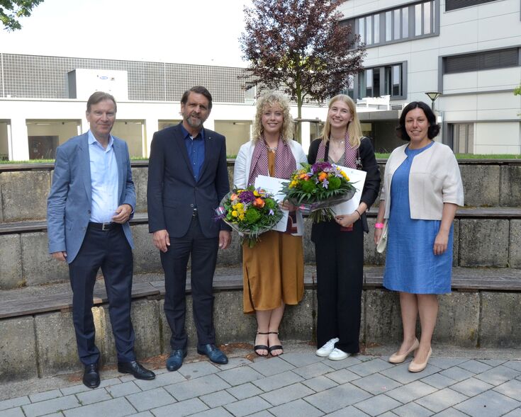Für zwei Absolventinnen des Master-Studiengangs Textile Produkte der Hochschule Niederrhein gab es gleich doppelten Grund zur Freude: Sie feierten zusammen mit ihren ehemaligen Kommiliton:innen des Fachbereichs Textil- und Bekleidungstechnik nicht nur ihren Abschluss, sondern erhielten auch eine ganz besondere Auszeichnung: Sie nahmen je 1500 Euro Preisgeld für ihre herausragenden Abschlussarbeiten entgegen.