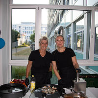 Klar ist, dass es ohne Sponsoren auch keinen Rennwagen gäbe. Das Team dankte daher den Hauptsponsoren von MLP, Brunel, Hebmüller, Kniest und ntn mit einem kleinen Geschenk, bevor dann der neue Wagen endlich enthüllt wurde. Wie immer gab es ein großes Interesse am Wagen und überbrückte so die Zeit, bis es zum gemütlichen Teil des Abends kommen konnte. Das Büfett war dann quasi auch fast eine Eigenleistung des Racing Teams. Der ursprüngliche Caterer fiel kurzfristig aus, so dass hier die Mutter des Teamleiters Frederic Schiwan, Andrea Janßen, die einen landwirtschaftlichen Betrieb mit Catering betreibt, mit dem Catering spontan einsprang. Und wie von den 200 Gästen zu hören war, war dies eine gute und leckere Lösung, die gerne wiederholt werden darf.