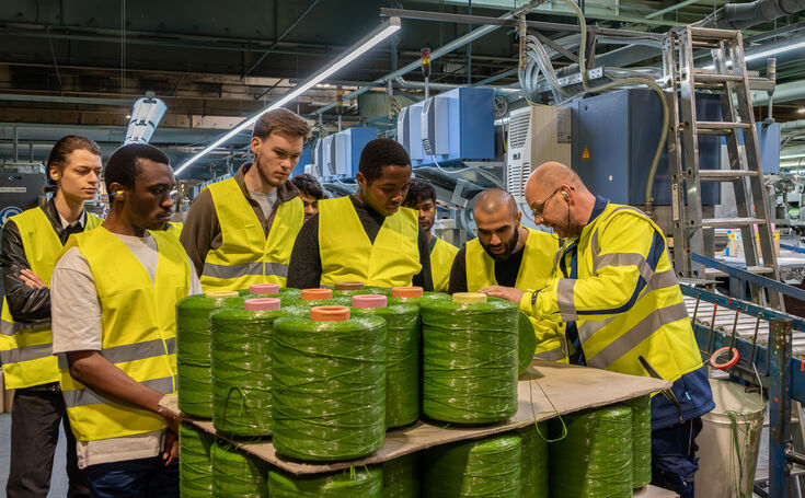 Startpunkt war der Campus Krefeld Süd, von dort ging es zur Polytex Sportbeläge-Produktions-GmbH in Grefrath. Das Unternehmen öffnete seine Produktionshallen und zeigte, wie moderne Sport- und Bodenbeläge entstehen. Die Studierenden konnten sich ein Bild vom Arbeitsalltag machen und mit Fachkräften ins Gespräch kommen.