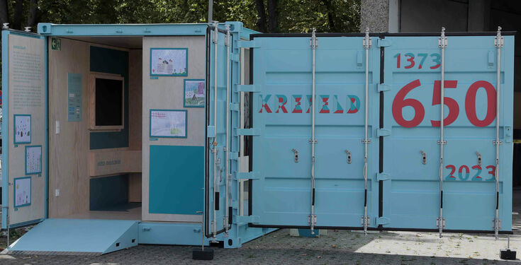 Dass Krefelds Stadtgeschichte in einen Seecontainer passt, davon können sich Bürger:innen noch bis Februar überzeugen. Vom 16. bis 24. Januar wird das unkonventionelle Wandermuseum nun auf dem Campus Süd (Parkplätze an Obergath 79) der Hochschule Niederrhein (HSNR) aufgebaut.