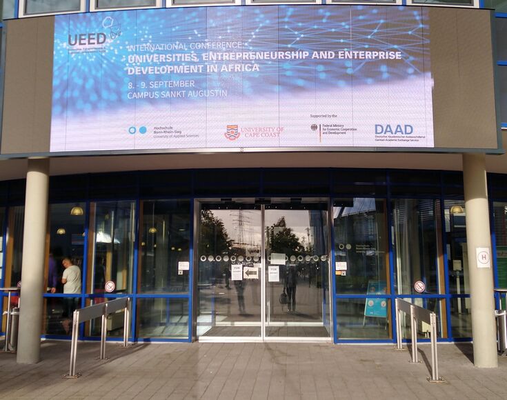 Am 08. und 09. September 2022 fand die UEED Africa Konferenz in Sankt Augustin und teilweise online statt. An der Konferenz nahmen über 200 Wissenschaftlicher, Forscher und Experten aus verschiedenen Ländern Afrikas und Deutschland teil. Das SWK E² Institut für Energietechnik und Energiemanagement war mit einer Posterpräsentation zum Projekt IIDES-NSC (Industry Integrated Dual Engineering Studies in a North-South Collaboration) vertreten, auf welchem der neu aufgebaute duale Studiengang, das Auswahlverfahren und im Besonderen die Einbindung der Industrie in das Studium vorgestellt wurden.