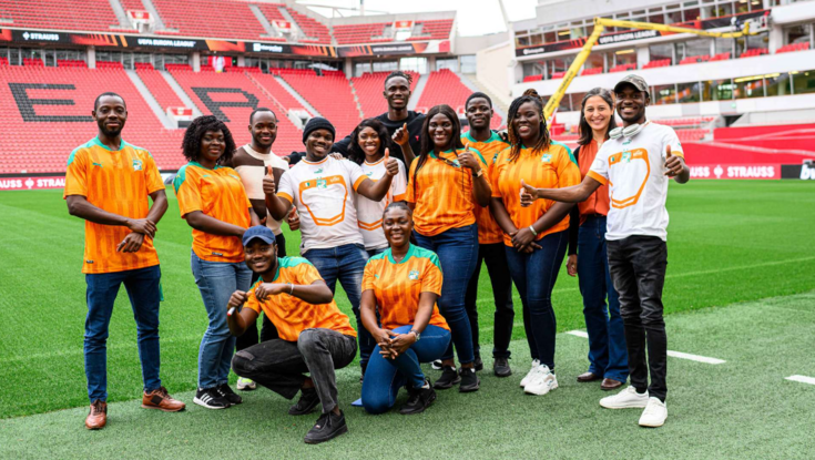 Die Côte d‘Ivoire ist ein fußballbegeistertes Land, im Januar 2024 findet dort der Afrika-Cup statt. So war es wenig verwunderlich, dass auch die Studierenden voller Vorfreude auf das außergewöhnliche Treffen waren. Schließlich ist Odilon Kossounou aktueller Nationalspieler der „Les Elephants“, wie die ivorische Nationalmannschaft genannt wird. Ausgestattet mit Trikots ihres Nationalteams, machte sich die Reisegruppe auf den Weg nach Leverkusen.