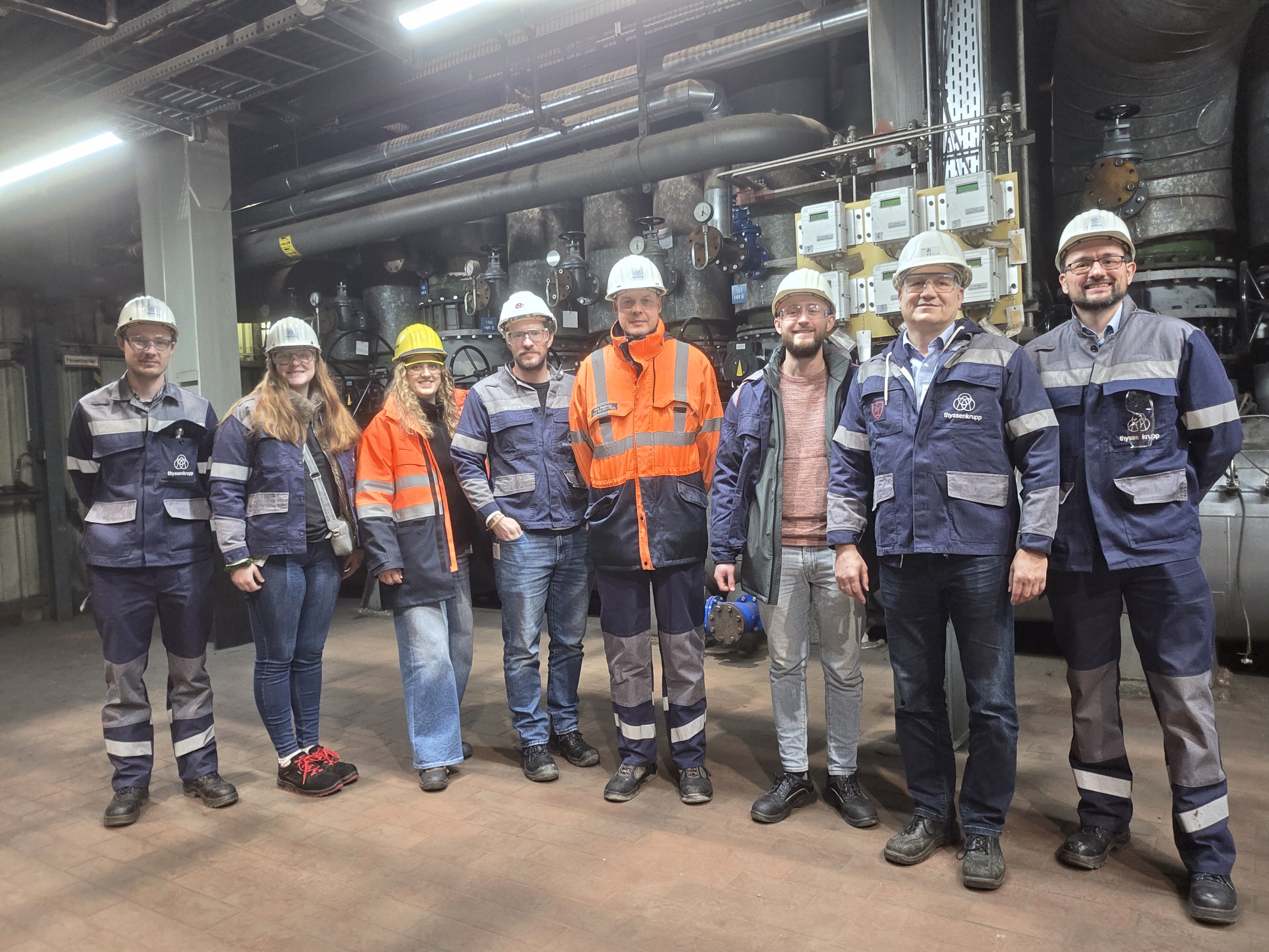 Ein erstes praktisches Highlight des Projekts folgte am 16.12.2024: Bei einer Werksbesichtigung der thyssenkrupp Steel Europe AG am Standort Duisburg-Hamborn erhielten die Projektpartner detaillierte Einblicke in das bestehende Wärme- und Kältenetz. Vor Ort konnten relevante Anlagenteile, Abwärmequellen und hydraulische Strukturen direkt begutachtet werden. Diese Erkenntnisse bilden eine zentrale Grundlage für die Modellvalidierung sowie für die spätere Analyse realisierbarer Flexibilitätspotenziale im industriellen Umfeld.