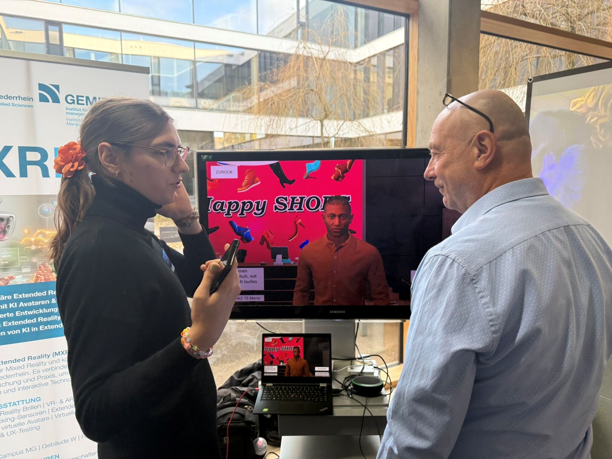 Das MXR Lab, das Dr. Hofeditz im Rahmen seiner Tätigkeit im Tandem Niederrhein weiter ausbaut, war erneut mit einem eigenen Stand vertreten. Zwei Forschungsprojekte standen dabei im Mittelpunkt: