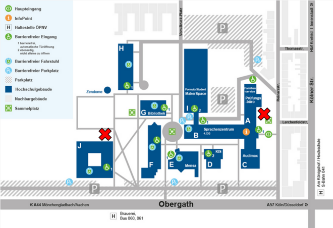 An allen Standorten der Hochschule Niederrhein gibt es ab jetzt Leihfahrräder, welche von allen Hochschulangehörigen kostenlos für eine Stunde pro Fahrt genutzt werden können.
