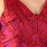 In this dress, metamorphosis as one form of change becomes obvious through the transformation of a caterpillar from a cocoon to a winged insect. Through this the designers draw attention to the laser cutter and ultra-sonic welding as digital and resource-efficient processing techniques at the same time. The digitally structured fabrics of the dress allow a constant adaptation to the movements of the wearer and symbolically express change through textile multi-colour effects and color plays.