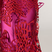 The digitally structured surfaces of the dress allow for constant adaptation to the wearer's movements and symbolically express change through textile multicolor effects and color play.