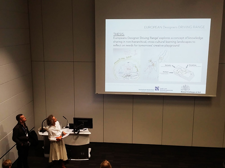 Prof. Ashley Hall PhD - Royal College of Art, London - and Prof. Dr. Marina-Elena Wachs - Hochschule Niederrhein - discussing Design Engineering Learning Landscapes of the Future… presenting together at EPDE Conference at Strathclyde University September 2019
