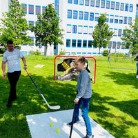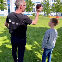 Gleich nebenan boten die Krefeld Ravens die Möglichkeit, sich im American Football zu versuchen. Der Wurf des eiförmigen Footballs in ein Netz wirkt einfacher, als man denkt.