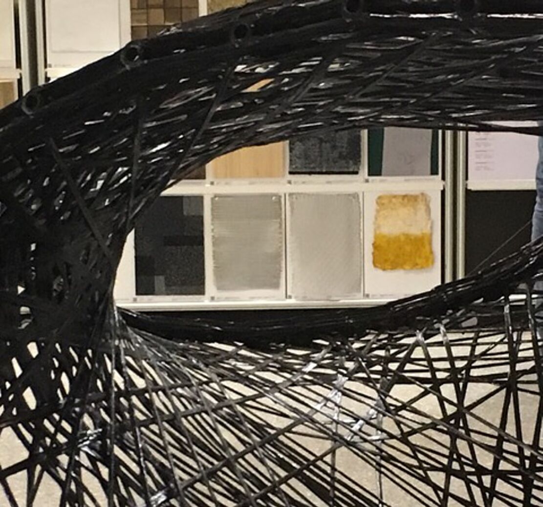 Unter den 118 nominierten Einreichungen, die in der Ausstellung MaterialANSICHTEN einen Teilbereich gestalteten, waren ebenso zwei Exponate von Masterstudierenden des Fachbereiches Textil und Bekleidungstechnik.