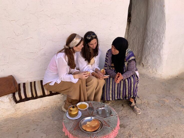01Frau des tunesischen Berbervolkes im Gespräch über kulturelle Tattoos mit Designerin Charlotte Weber und Ramona Moellers, Tunis 2022