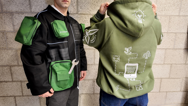 Das Projektteam 7 entwickelte in Kooperation mit der Firma Sonepar Deutschland eine neue funktionale Workwear-Linie für das Elektrohandwerk. Im Mittelpunkt steht eine innovative Arbeitsjacke, die speziell auf die Anforderungen von Elektrikerinnen und Elektrikern abgestimmt ist. Sie überzeugt durch ergonomische Passform, langlebige Materialien und praxisnahe Details wie modulare Taschen, abnehmbare Ärmel und reflektierende Elemente. Ergänzt wird das Konzept durch einen bestickten Hoodie mit Sonepar-Logo, der nicht nur zusätzlichen Komfort bietet, sondern auch die emotionale Verbindung zur Marke stärkt.